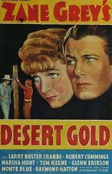 Desert Gold is a 1936 American western directed by James P. Hogan, starring Buster Crabbe and Marsha Hunt, based on a Zane Grey novel and released by Paramount Pictures.