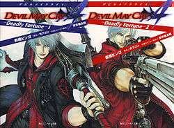 Devil May Cry 4: Deadly Fortune is a two-volume adaptation of the fourth video game in the series, Devil May Cry 4. It was written by the game's writer, Bingo Morihashi, with assistance from Yasui Kentarou. The two novels were published by Capcom during 2009.[6][7] In the afterword, Bingo wrote that these removed scenes were intended to be included in the game, but were not due to some production reasons.
