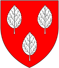 - Ayshford of Ayshford: Argent, three ash crops vert between two chevrons sable