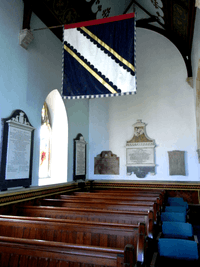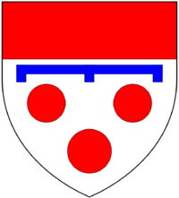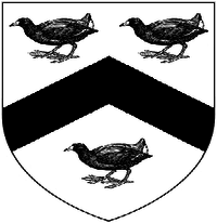 - ↑ As seen in 19th c. stained glass window in Mamhead Church. Blazoned with chevron sable and with difference of a martlet, per Vivian, p.35