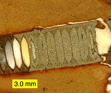 The term diagenesis, literally meaning "across generation",[3] is extensively used in geology. However, this term has filtered into the field of anthropology, archaeology and paleontology to describe the changes and alterations that take place on skeletal (biological) material. Specifically, diagenesis "is the cumulative physical, chemical and biological environment; these processes will modify an organic object's original chemical and/or structural properties and will govern its ultimate fate, in terms of preservation or destruction".[4][5] In order to assess the potential impact of diagenesis on archaeological or fossil bones, many factors need to be assessed, beginning with elemental and mineralogical composition of bone and enveloping soil, as well as the local burial environment (geology, climatology, groundwater).[5]