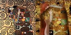 The opening and ending sequences feature artistic drawings of the principal characters. These characters are drawn in a style based on Gustav Klimt's paintings, including The Kiss, Adele Bloch-Bauer I, and others with similar imitating poses, colors, and patterns.[12] In promotional art as well as in the series itself, characters make use of a famous El Greco hand symbol of outstretched fingers with the middle and ring fingers connected. The song Elfenlied ("Elf Song") appears in the manga[13] and is credited to the composer Hugo Wolf. A poem by Eduard Mörike is the basis for Wolf's version. It is taught to Nyu by the manga-only protagonist Nozomi.