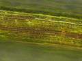Broom forkmoss is usually robust and coarse, forming shiny tufts with woolly stems 2–8 cm high. The leaf midrib extends to the tip and usually has 4 ridges along its back. The leaves are 3.5–8 mm long, lance-shaped with a long, slender point, and strongly toothed along the upper third. Most leaves will be folded and curved to one side, but may be wavy. Capsules are 2.3–5 mm long, urn-shaped and curved. The capsules are held on mostly-erect stalks 18–35 mm long. The operculum (capsule lid) is usually longer than the capsule.[2]