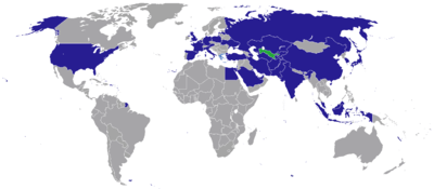 This is a list of diplomatic missions of Uzbekistan. The landlocked Central Asian state straddles an interesting political divide within the spheres of influence of Russia, China and the Islamic world. Simultaneously Uzbekistan seeks its economic and political fortunes by forging ties with both the United States and the European Union, notwithstanding criticism of the country's poor human rights record. The country's diplomatic network reflects these competing priorities.