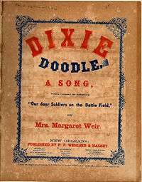 Dixie Doodle was a popular parody of Yankee Doodle in the South at the time of the American Civil War. It was written in 1862 by Margaret Weir, published in New Orleans, and dedicated to "our dear Soldiers on the Battle Field".