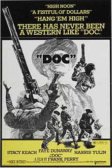 Doc is a 1971 American western film, which tells the story of the gunfight at the O.K. Corral and of one of its protagonists, Doc Holliday. It stars Stacy Keach, Faye Dunaway and Harris Yulin. It was directed by Frank Perry. Pete Hamill wrote the original screenplay. The film was shot in Almeria in southern Spain.
