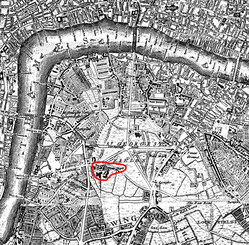"John Rocque's Map of London – 1746". On-line old maps of Great Britain. Ancestry.com. Retrieved 29 June 2013. In particular sheet D3 - ↑ Alderman Crosby (20 September 1787). "Tuesday the Lord Mayor, Mr. Alderman Crosby, and Sir William Plomer, met at St. Margaret's Hill". The Times (854): 3.
