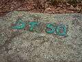 Babson Boulder near the MBTA tracks indicating the direction of Rockport