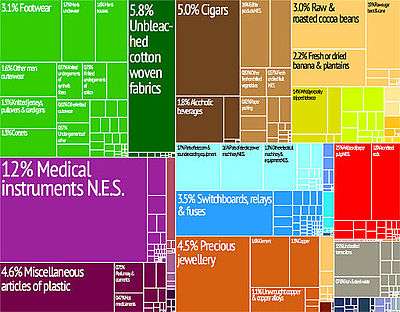 Recent growth has been driven by construction, manufacturing and tourism. On the demand side, private consumption has recently been strong, as a result of low inflation (under 1% on average in 2015), job creation, as well as high level of remittances. The Dominican Republic has a vibrant national stock market, Bolsa de Valores de la Republica Dominicana (BVRD).[23] The Dominican Republic's economic progress is exemplified by its advanced telecommunication system and transportation infrastructure.[24] Nevertheless, unemployment,[5] government corruption, and inconsistent electric service remain major Dominican problems. The country also has "marked income inequality."[5] International migration affects the Dominican Republic greatly, as it receives and sends large flows of migrants. Mass illegal Haitian immigration and the integration of descendants of Haitians are major issues.[25] A large Dominican diaspora exists, mostly in the United States.[26] It contributes to the Dominican Republic's development, sending billions of dollars to Dominican families in remittances.[5][27]