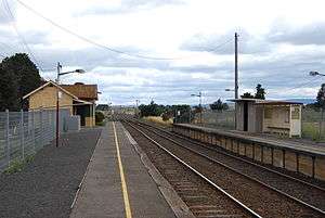 In 1962, the Melbourne-Albury standard gauge line behind Platform 1 opened, with the 900 metre Donnybrook Loop. Since 2011, the loop has been extended into a 6.8 kilometres long passing lane as part of the Australian Rail Track Corporation's Melbourne–Sydney upgrade program,[6] but has since been cut back to 2 kilometres in length.[7][8]