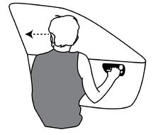 Motorists can make dooring less likely by practicing the "Dutch reach" - opening the car door by reaching across the body with the more distant hand.[4] In the Netherlands, drivers taking their license exam are required to open the door with their right hand, thereby turning their torso and allowing them to see any oncoming cyclists, hence the term "Dutch reach".[5] This move does not have a Dutch name, but in 2016 an American physician named it.[6]