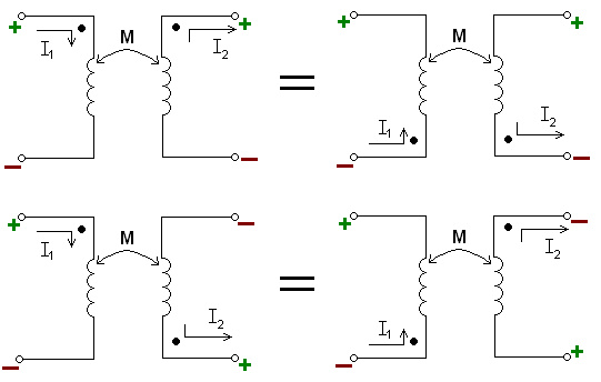 - The instantaneous polarities of the voltages across each inductor with respect to the dotted terminals are the same.[3]