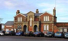 Today passenger operations are confined to a bi-directional single electrified track, using what was the "up" track in the days when services through the station were operated on both tracks by steam and diesel locomotives. The remains of what was the "down" platform survive. The down platform also had a rather sizeable canopy, which was of little benefit given that most use of the platform was by passengers arriving. The bridge which linked the two platforms has since been removed. The only station beyond Dovercourt on the down side is Harwich Town, which is a relatively short walking distance. The station also had a signal box which was positioned at the west (London) end of the down platform;[2] it controlled the occasional goods movements to short sidings at both ends of the up platform, which were used for coal and other goods deliveries to the town.