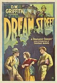 Dream Street is a 1921 American silent romantic drama film directed by D. W. Griffith, and starring Carol Dempster, Charles Emmett Mack, and Ralph Graves in a story about a love triangle set in London, and based on two short stories by Thomas Burke, "Gina of Chinatown" and "Song of the Lamp". The cast also features Tyrone Power, Sr..
