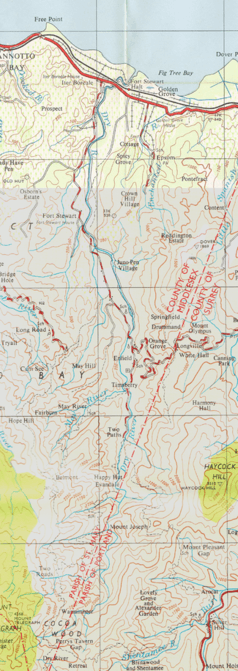 - 1 2 3 4 5 6 7 8 9 10 11 12 UK Directorate of Overseas Surveys 1:50,000 map of Jamaica sheet K, 1966.