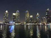 Dubai Marina (Arabic: مرسى دبي) is a district in Dubai, United Arab Emirates. Dubai Marina is an artificial canal city, built along a two-mile (3 km) stretch of Persian Gulf shoreline.[1] When the entire development is complete, it will accommodate more than 120,000 people in residential towers and villas.[2] It is located on Interchange 5 between Jebel Ali Port and the area which hosts Dubai Internet City, Dubai Media City, and the American University in Dubai. The first phase of this project has been completed. Dubai Marina was inspired by the Concord Pacific Place development along False Creek in Vancouver, BC, Canada.[3]