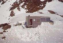 The Durier Hut (French: Refuge Durier) is a mountain hut in the Mont Blanc massif of the Alps. It is located in Haute-Savoie department of France on the French/Italian border at an altitude of 3358 m. [1]:21 [2]:218 [3]:276