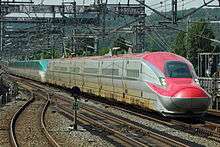 The E6 series (E6系) is a Japanese Shinkansen high-speed train type operated by East Japan Railway Company (JR East) on Komachi "mini-shinkansen" services on the Tohoku Shinkansen and Akita Shinkansen from Tokyo to Akita since 16 March 2013. A pre-series set was delivered in June 2010 for extensive testing, with 23 full-production sets delivered between November 2012 and spring 2014.[1]