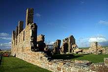 The Earl's Palace in Birsay, Orkney, Scotland, is a ruined 16th-century castle. It was built by Robert Stewart, 1st Earl of Orkney (1533–1593), illegitimate son of King James V and his mistress Euphemia Elphinstone. The palace is a category A listed building and a Scheduled Ancient Monument,[1][2] and is in the care of Historic Scotland.