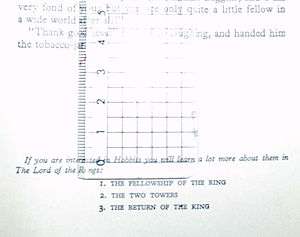Tolkien began work on The Lord of the Rings in the years after The Hobbit's publication. As the story evolved, Tolkien realized he needed to change how Bilbo and Gollum interacted in The Hobbit to suit the plot of The Lord of the Rings. Allen & Unwin prepared a new edition of The Hobbit for release in 1951, and Houghton Mifflin followed suit. These American impressions from the 5th through the 14th were bound from sheets printed in Great Britain, corresponding to the same George Allen & Unwin Ltd printings of the second edition. Unlike the AU printings, the American copies do not state the printing until the 18th in the second edition, making them very difficult to identify in isolation. The only exceptions are the 11th, 12th, and one of the two variants of the 5th impression, each of which states the full printing history. The following list of "points" was developed by Strebe[3] by comparing unknown American printings to known British printings. Steve Frisby untangled the 9th printing, which differs from its Allen & Unwin counterpart on page 315. (This divergence likely resulted from the cancel title pages AU was obliged to supply when they converted 9th printing sheets intended for British domestic use into Houghton Mifflin sets.[4]) Information regarding the print run sizes of the Second American Edition of the Hobbit is reported at TolkienBooks.net[4] and is derived from Allen & Unwin records.[5]