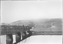 The bridge was determined to be eligible for a listing on the National Register of Historic Places. However, on December 3, 1984, plans were made for the bridge's demolition in 1987.[1] In the same year, it was replaced completely by a new bridge in the same location.[5] Factors contributing to its demolition included its age and the lightweight design of its trusses.[6] This new bridge was designated as the "Fort McClure Veterans Memorial Bridge" on December 5, 1988.[7]