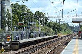 There is a basic half-hourly service in each direction, northbound to Piccadilly and southbound to the Airport; these call at all intermediate stations.[4] Alternate southbound trains run through to Crewe via Wilmslow and Alderley Edge. Some weekday peak period through trains to other destinations (Liverpool Lime Street and Blackpool North) also stop here.
