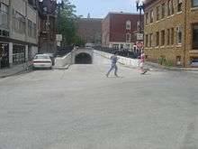 The East Side Trolley Tunnel is a tunnel in Providence, Rhode Island, originally built for trolley use in 1914, and now used for public transit buses. It runs for 2000 feet (600 meters) under College Hill on Providence's East Side, with its west end at South Main Street and its east end at Thayer Street. Prior to the construction of the Trolley Tunnel, the steepness of the streets climbing College Hill led to construction of the only cable-car system ever to be built in New England.[1][2]