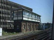 The current signal box was built in 1882 and had an impressive 108 Lever frame controlling the station, goods yard and carriage sidings, this was later replaced on 14 November 1934 with a 72 lever frame. In 1991 the signal box was changed into a power signal box when the semaphore signals were replaced by colour light signals and an "entrance-exit" control system installed. The signal box closed in 2015 with the re-signalling of the line between Lewes and Bexhill controlled from a new signalling centre at Three Bridges
