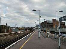 A goods station and yard was built north of the present station, on the site of the first station and was accessed from the mainline north of the station. Also to the north of the station was an extensive coal depot and industrial sidings including the Crumbles siding. The goods shed still survives today as the Enterprise Shopping Centre and the goods yard surrounding it is now the station car park. The coal sidings to the north of the station is now on the site of a car dealer.