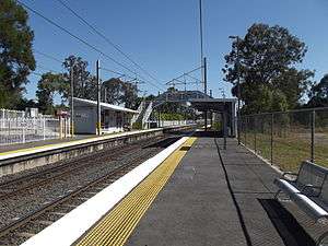 Ebbw Vale railway station is located on the Main line in Queensland, Australia. It serves the suburb of Ebbw Vale in the City of Ipswich. It opened as St Helens, being renamed Ebbwvale in 1910.[1] The name was hyphenated to Ebbw-vale and officially called Ebbw Vale by 1928.[2]