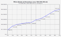 The economy of the Brazilian state of Pernambuco is based on agriculture, animal husbandry and industries. The economy of the state, after stagnating from 1985 and 1995, has been growing rapidly since the end of the twentieth century. In 2000, the GDP per capita was R$3.673 ($2098), resulting in more than 40% growth in this period, and more than 10% in a year. In 2007, the GDP per capita grew up to R$7.337 ($4.217).
