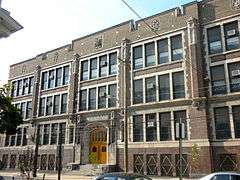Edgar Allan Poe School is a historic school building located in the Girard Estate neighborhood of Philadelphia, Pennsylvania. It was designed by Henry deCoursey Richards and built in 1913-1914. It is a four-story, five bay, brick and limestone building on a raised basement in the Tudor Revival-style. It features a three-bay, projecting center section with an arched limestone entrance, decorative panels, and a parapet with battlement cuts.It is currently know now as the Girard Academic Music Program.[2] It was named for author Edgar Allan Poe.