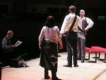 American Night at the Opera rehearsal at St Andrew's and St George's West, Edinburgh - 2012-2013 Christmas Gala Concert St Cuthbert's Church, Lothian Road. 9 December 2012. (Polovtsian Dances, Priests' Chorus and Trio Magic Flute, Catalogue Aria, Barcarolle, Chorus of the Hebrew Slaves, Dido's Lament, I Dreamt I Dwelt in Marble Halls, Bridal Chorus, Wedding Chorus, Pour, o Pour the Pirate Sherry, I am a Pirate King, Glitter and Be Gay, Evening Prayer, Champagne Toast and Dui Du from Die Fledermaus, If I Were A Rich Man, I Could Have Danced All Night, Still Still Still, We Wish You A Merry Christmas). Conductor Neil Metcalfe; Soloists Christina Dunwoodie, Susan McNaught, Ivor Klayman, Jennifer Craig.[105] Verdi Bi-centenary Gala Concert St Cuthbert's Church. 10 March 2013. (Brindisi Rachael Brimley, Barry McAleer and Chorus; Saper Voreste Angela Estrada; Si, La Stanchezza...Si Nostri Monti Taylor Wilson, Barry McAleer; Merce Diletti Amiche Susan McNaught; Che V’Agita Cosi Christina Dunwoodie, Debora Ruiz-Kordova, Barry McAleer; Caro Nome Jennifer Craig; O Don Fatale Debora Ruiz-Kordovo; Lunge Da Sie...Deh Miei Bollenti Spiriti Barry McAleer; Bella Figlia Del’Amore Jennifer Craig, Taylor Wilson, Ralph Strehle, Anders Ostberg; Gypsy and Matador Scenes, Taylor Wilson Cailean Swainson, Ben Ellis, Ian Paterson; Ernani Involami Rachael Brimley; Miserere Susan McNaught, Barry McAleer; O Figli Miei...Ah, La Paterna Mano Ralph Strehle; Pace Mio Dio Christina Dunwoodie; Per Me Giunto...O Carlo Ascolto Anders Ostberg; Va Pensiero Tutti)[106][107] Summer Opera Gala Brunton Theatre, Musselburgh as part of the Edinburgh Festival Fringe. 16 August 2013. Musical Director Richard Lewis; Producer Christina Dunwoodie; Soloists Wedding Chorus from Lucia... Graham Webster, Catalogue Aria Ivor Klayman, Soave Si il Vento Jennifer Craig, Sarah Gross, Ivor Klayman, Barcarolle Christina Dunwoodie, Susan McNaught, Fear No Danger Sarah Gross, Kirsten Wallace, Dido's Lament Sarah Gross, Marie Therese Jennifer Craig, Christina Dunwoodie, Susan McNaught, McDuff's Aria William Turner, Dich Theure Halle Susan McNaught., Ah Non Credea Jennifer Craig, Brindisi Susan McNaught, William Turner, Gia Nella Note Densa Christina Dunwoodie, William Turner, Bridal Chorus Ensemble, Pirate King Ivor Klayman, Glitter and be Gay Jennifer Craig, Summertime Christina Dunwoodie, Dein ist Mein Ganzes Herz William Turner, Evening Prayer Jennifer Craig, Susan McNaught, Chorus of the Hebrew Slaves Ensemble.[108][109]