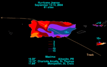 ![]() Radar image of Jeanne striking Puerto Rico | |