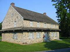 In 1755, Jacob Kohler established a gristmill, located along the Coplay Creek just south of the church.[2] The Troxell-Steckel House, which was built in Egypt in 1756, is one of the oldest buildings in Lehigh County[7] and is today operated as a museum and historic site by the Lehigh County Historical Society. The Egypt area was also the location of Fort Deshler, a French and Indian War era frontier fort established in 1760 to protect settlers from Indian attacks.[8] The fort, which was near the present intersection of PA Route 145 and Chestnut Street, stood until about 1940. The site is commemorated by a Pennsylvania Historical and Museum Commission marker.[9] A granite marker, located just outside Egypt at Scheidy's Road and Spring Street, commemorates the last Indian attack in Lehigh County, which occurred on October 8, 1763, when nine settlers were murdered.[10]