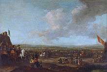 Maurice's motivation was the desire to manoeuvre the Republic in a better position in case the war with Spain would resume after the expiration of the Truce in 1621. Renewal of the Truce was a distinct possibility, but it had become less likely, as both in Spain and in the Republic more hard-line factions had come to power.[15] Though civil war had been avoided in the Republic, national unity had been bought with much bitterness on the losing Remonstrant side, and Maurice for the moment had to garrison several former Remonstrant-dominated cities to guard against insurrection. This encouraged the Spanish government, perceiving internal weakness in the Republic, to choose a bolder policy in the Bohemian question than they otherwise might have done. The Bohemian war therefore soon degenerated into a proxy war between Spain and the Republic. Even after the Battle of White Mountain of November 1620, which ended disastrously for the Protestant army (one-eighth of which was in the Dutch pay), the Dutch continued to support Frederick militarily, both in Bohemia and in the Palatinate. Maurice also provided diplomatic support, pressing both the Protestant German princes and James I to come to Frederick's aid. When James sent 4,000 English troops in September 1620, those were armed and transported by the Dutch, and their advance covered by a Dutch cavalry column.[16]
