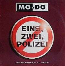 "Eins, Zwei, Polizei" (German: One, Two, Police) is a 1994 single recorded by Italian dance act Mo-Do. It was its debut single from its 1995 album Was Ist Das? and it achieved great success in many European countries, including Germany, Austria, France, Switzerland, the Netherlands, Sweden and Italy, where it reached the top ten.