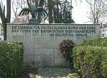 A war memorial near Dachauer Straße commemorates the Bavarian railway troops of World War I. The original one was erected by Karl Badberger in 1922, but was destroyed in 1945 during World War II. It was rebuilt in 1965.