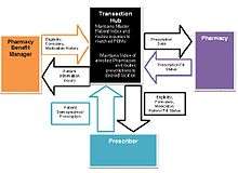The transaction hub provides the common link between all actors (prescriber, pharmacy benefit manager, and pharmacy). It stores and maintains a master patient index for quick access to their medical information as well as a list of pharmacies.[3]