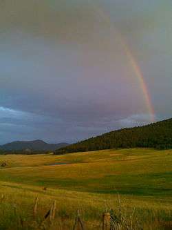 Elk Meadow Park is a park and trail system[1] in Evergreen, Colorado managed by Jefferson County Open Space. This program began acquiring these ranchlands in 1977 to create the extensive protected area, which is made larger by adjacent public lands. Contiguous to Elk Meadow Park on the west is Bergen Peak Park, a "conservation/wilderness" area that is part of the Denver Mountain Parks system. Through a cooperative effort between the two park management entities, the Too Long Trail in Elk Meadow Park continues to Bergen Peak, at 9,708 ft (2959 m). Noble Meadow, a conservation easement adjacent to Elk Meadow Park on the northwest along Squaw Pass Road, has no public access. The Bergen Peak Wildlife Area, managed by the Colorado Division of Wildlife, is next to the Park's southwestern boundary.