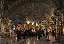 The main altar is devoted to the Epiphany and the Baptism of Jesus. The cathedral has two side-chapels: the left one of Saint Nicholas and the right one of the Annunciation. The most popular shrines of the cathedral are those that house the relics of St. Alexius of Moscow and the Kazan Icon of the Mother of God.
