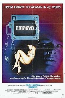 Embryo is a 1976 science fiction horror film directed by Ralph Nelson and starring Rock Hudson alongside Barbara Carrera, with a cameo appearance by Roddy McDowall.[1] It deals with the mental and physical consequences of growing a human embryo in an artificial uterus.