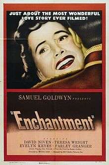 Enchantment (1948) is a romantic film starring David Niven and Teresa Wright, directed by Irving Reis, produced by Samuel Goldwyn, and based on the novel Take Three Tenses by Rumer Godden.