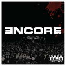 Encore (stylized as ƎNCORE) is the fifth studio album by American rapper Eminem. It was released by Aftermath Entertainment, Shady Records, and Interscope Records. Its release was set for November 16, 2004, but was moved up to November 12 (coincidentally, exactly eight years to the day his debut album, Infinite, was released) after the album was leaked to the Internet. Encore sold 710,000 copies in its first three days,[1] and went on to sell over 1.5 million copies in its first two weeks of release in the United States, certified quadruple-platinum that mid-December.[2] Nine months after its release, worldwide sales of the album stood at 11 million copies.[3]