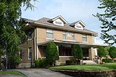 The England House is a historic house at 2121 Arch Street in Little Rock, Arkansas. It is broad two story brick building, capped by a hip roof with gabled dormers. The main facade has a porch extending across its facade, supported by large brick piers. Its basic form is reminiscent of the Prairie School of design, but the house has Classical elements, including its (now enclosed) south side porch, which is supported by large Tuscan columns. The house was built in 1914 to a design by architect Charles L. Thompson.[2]
