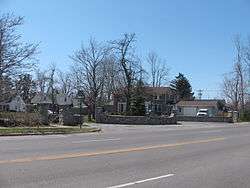 Entranceway at Main Street at Roycroft Boulevard is a suburban residential subdivision entranceway built in 1918. It is on Main Street (New York State Route 5) in the hamlet of Snyder, New York, in the town of Amherst within Erie County. The entranceway is a marker that represents the American suburbanization of rural areas, suburbanization that occurred through transportation-related land development on the edges of urban areas. It consists of a variety of half-height wall formations, featuring a semicircular wall on the Roycroft Boulevard median's intersection with Main Street.[2][3] The entranceway was added to the National Register of Historic Places on December 7, 2005.[1]