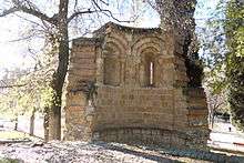 The Ermita de San Pelayo y San Isidoro (English: Hermitage of Saint Pelagius and Saint Isidore) was a Romanesque Catholic temple, built in the Spanish city of Ávila. It was built outside the City Walls, in front to the Gate of Malaventura in the south side of the Walls, to the west. In Ávila remains an area known as Atrium of San Isidro. After the Spanish confiscation it was moved to Madrid where had different locations. Its remains remnants finally found accommodation in the Buen Retiro Park in Madrid.[1]