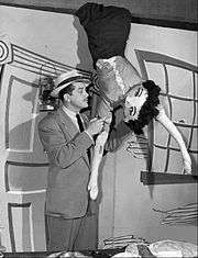 Kovacs and Adams met in 1951 when she was hired to work for his WPTZ show, Three to Get Ready.[31] Her appearance on Arthur Godfrey's Talent Scouts caught the eye of Kovacs' producer, and he asked her to audition for the program. A classically trained singer, she was able to perform only three popular songs. Edie said later, "I sang them all during the audition, and if they had asked to hear another, I never would have made it."[14][119] Quoting Kovacs, "I wish I could say I was the big shot that hired her, but it was my show in name only – the producer had all the say. Later on I did have something to say and I said it, 'Let's get married.'"[19][22]