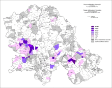 - Bunjevci – Bunjevci are small ethnic group whose members mostly live in northern Vojvodina. There are 16,469 Bunjevci in Vojvodina.[6][7][8] The largest concentration of Bunjevci could be found in the municipalities of Subotica (9.57%) and Sombor (2.4%). Members of Bunjevci community are divided according to declaration of nationality and many also declare themselves as Croats or Yugoslavs. This nationality division also divide some Bunjevac families and there are many cases in which one sibling has declared as Bunjevac, while the other one has declared as Croat.[9] They speak (or have spoken) a specific Ikavian-Shtokavian dialect of Serbo-Croatian language. In census, they declare their language as Bunjevac or Serbian.