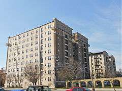 Eutaw-Madison Apartment House Historic District is a national historic district in Baltimore, Maryland, United States. It consists of a group of three multi-story apartment buildings built in the first quarter of the 20th century. They are: The Esplanade, a 9-story apartment building built in 1912; the Emersonian, an 8-story building constructed in 1915 of stuccoed masonry; and Temple Gardens, a 14-story building built in 1926. The district is significant in part because of its association with Baltimore's Jewish community. During the 19th the Eutaw-Madison neighborhood became a center for the Jewish community in Baltimore. By the 1920s the neighborhood had been established firmly as a neighborhood of middle and upper-class Jews, many of whom were professionals and merchants.[2]